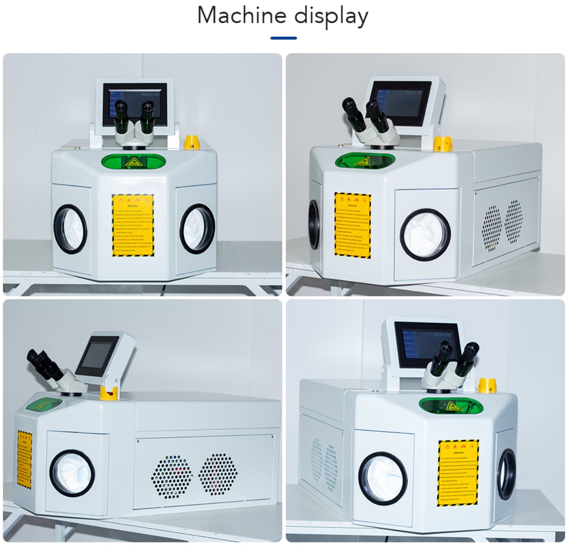 | Jewelry laser welding machine adopts ergonomic design, suitable for professionaappearance design of jewelry laser welding industry, equipped with a dedicatedcross cursor microscope observation system, equipped with high-speed elec-tronic filter device, which can protect the eyes of the operator. The high-powerbeam expansion system can obtain more fine spots to meet the needs of finelaser spot welding; the whole machine is small in size, convenient to carry andtransport, simple to operate, good welding effect, stable and reliable equipment,and low failure rate. |