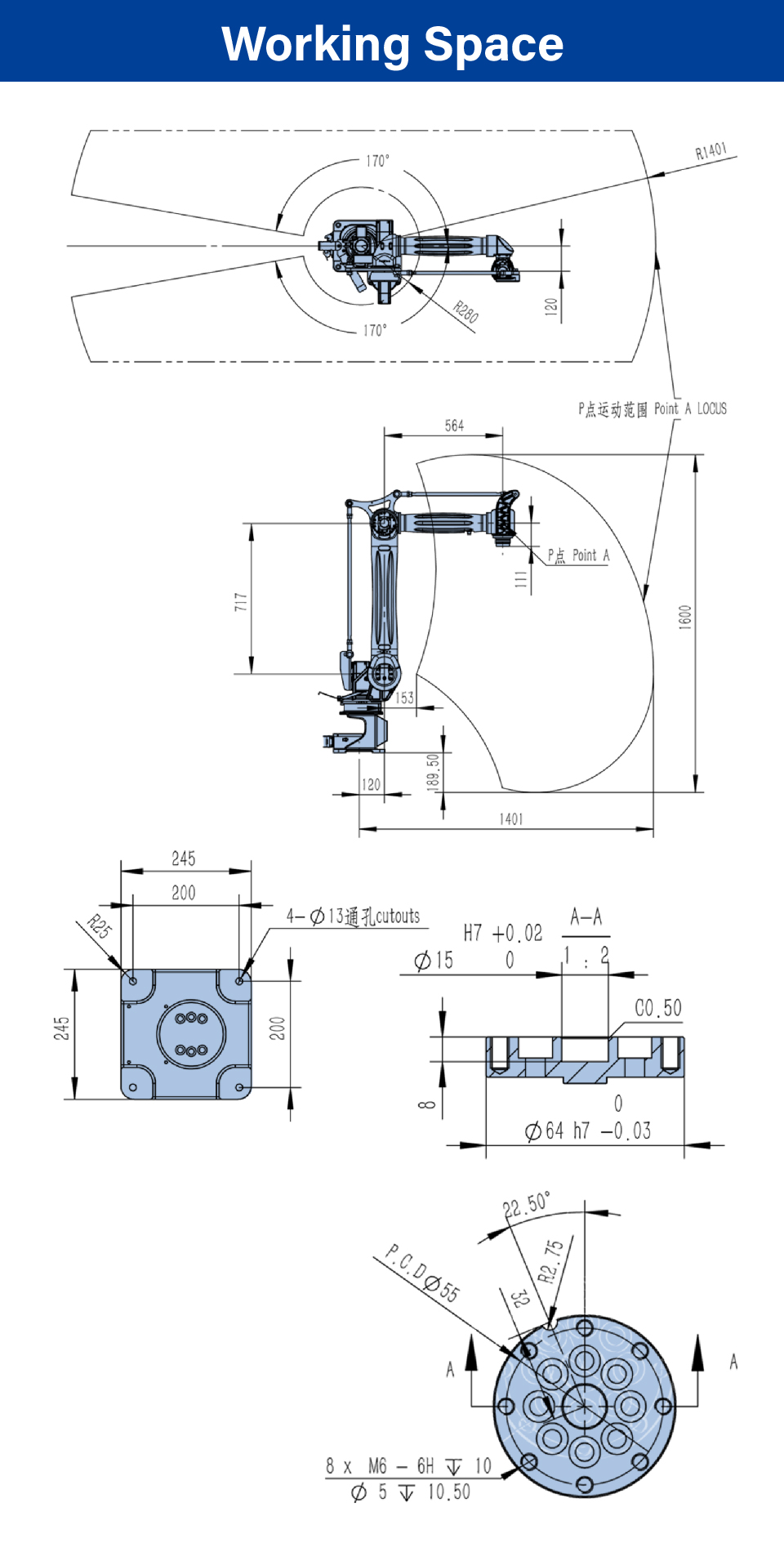 | Stats | Maximum Load: 6kg Working radius: 1401mm |