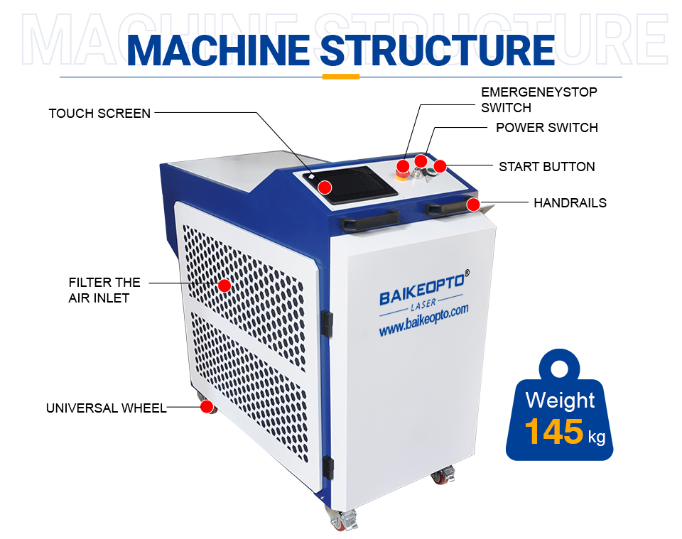 | Baikeopto Laser cleaning machines revolutionize industrial maintenance by delivering precise, non-contact cleaning without damaging substrates. Ideal for removing rust, oil, or coatings from machinery parts, they ensure zero consumable waste and faster cycle times compared to traditional methods. Perfect for factories seeking sustainable, high-precision cleaning solutions. |