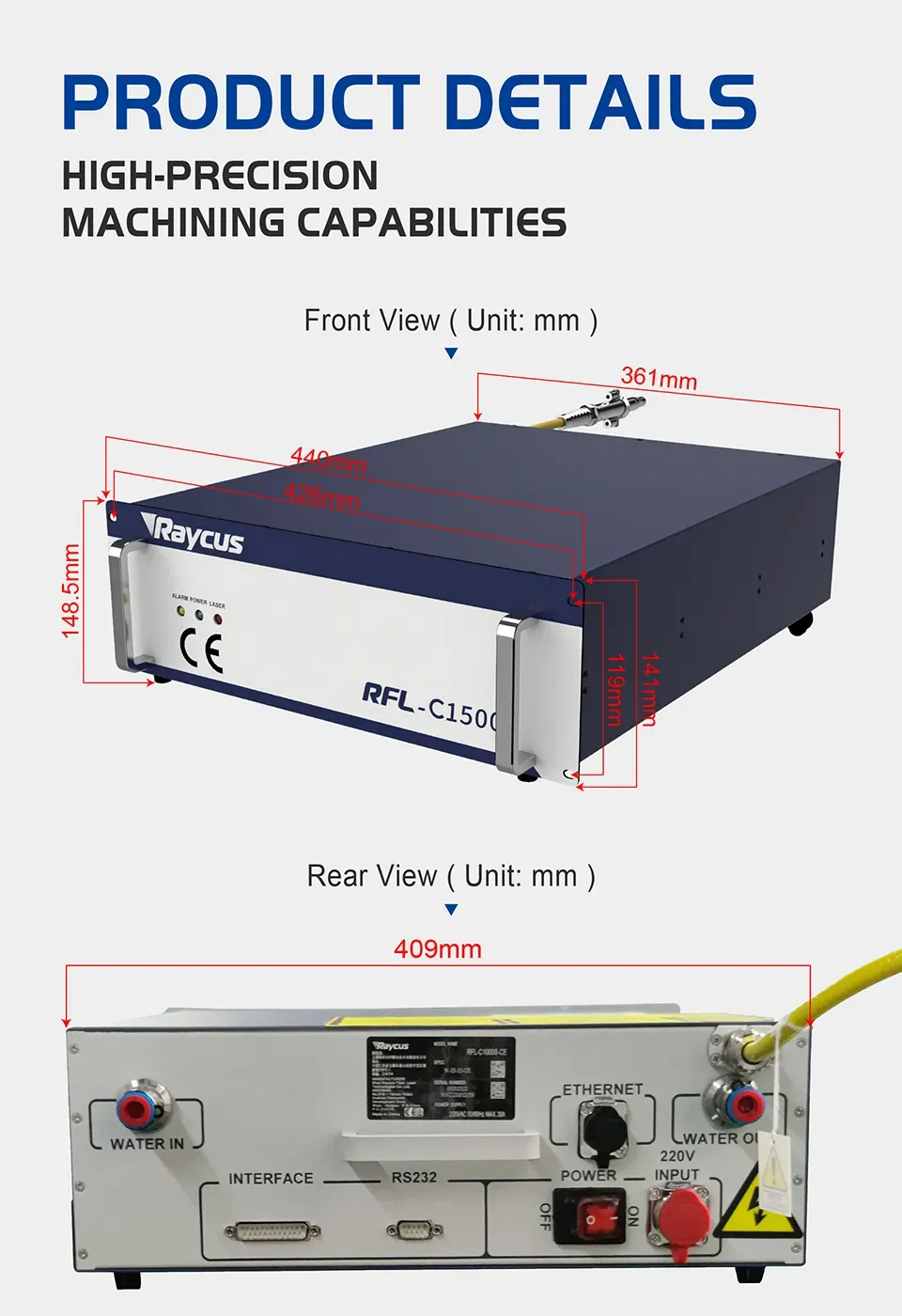 | Raycus 1500W Single Mocule CW Fiber Lasers for Cutting RFL-C1500S-CE |