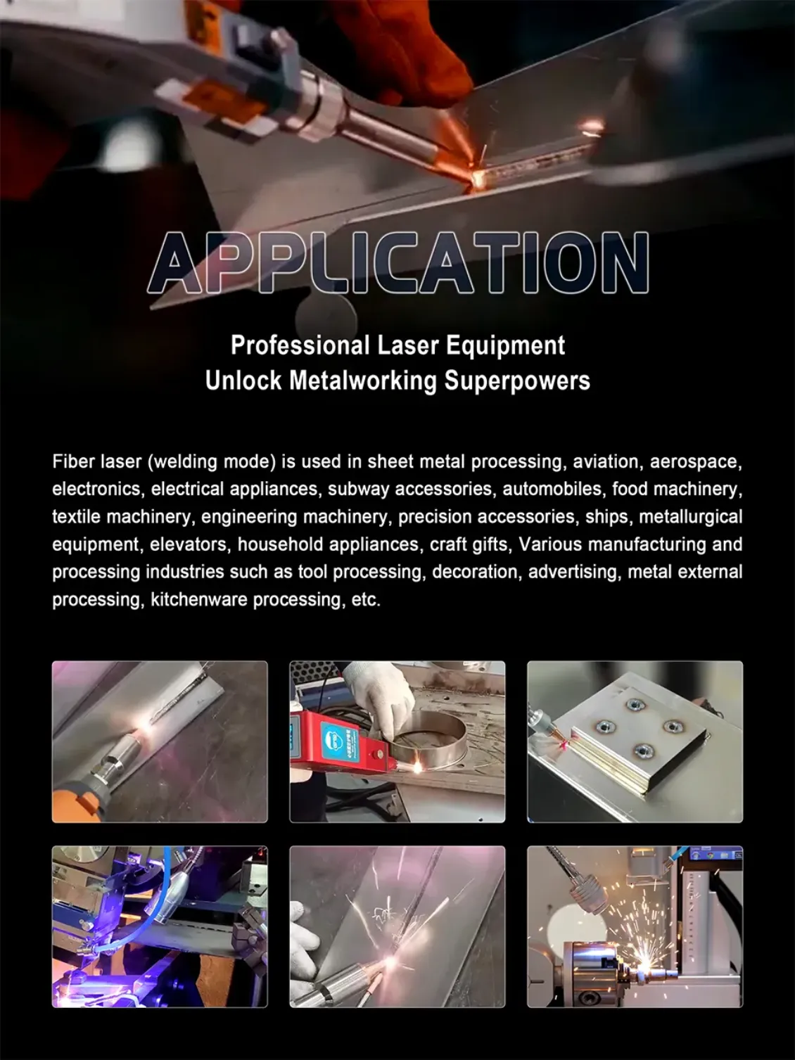 | Raycus Laser sources are widely used in multiple industries. such as maunfacturing industry, Automative industry , Aerospace, Petrochemical Industry, Rail Traffic, 3C Electrinic , Sheet metal working , Advertising Sign, Kitchen industry, Househeld appliance, fitness equipment, precision Machinery,etc. |